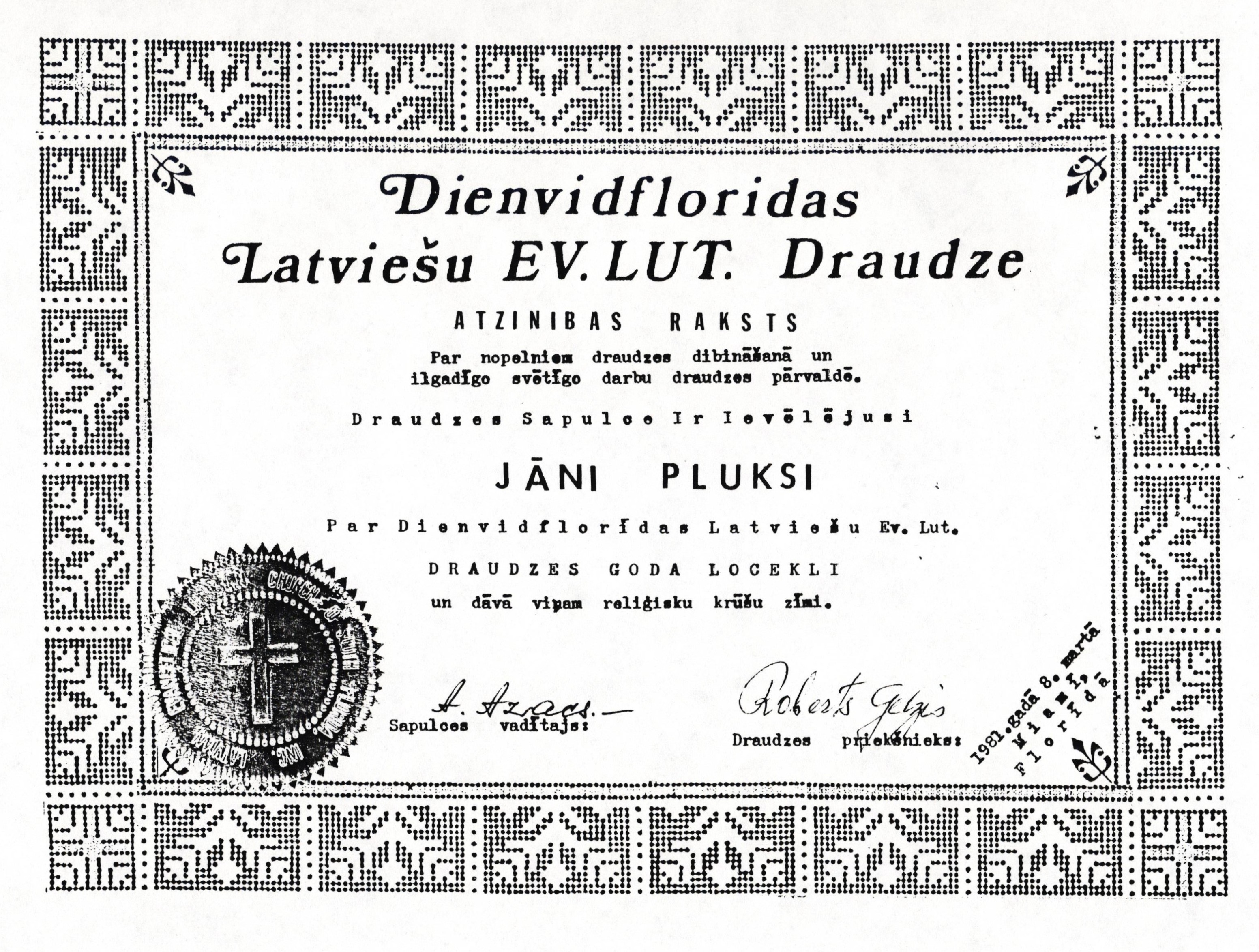 Jānis Pluksis – sabiedriskais darbinieks, kurš aktīvi darbojās Klīvlendas Daugavas Vanagu apvienībā, kā arī pēc tam Dienvidfloridas Latviešu biedrībā, daudz laika un darba veltot trimdas latviešu kultūras centra “Latviešu Māja” izveidei.