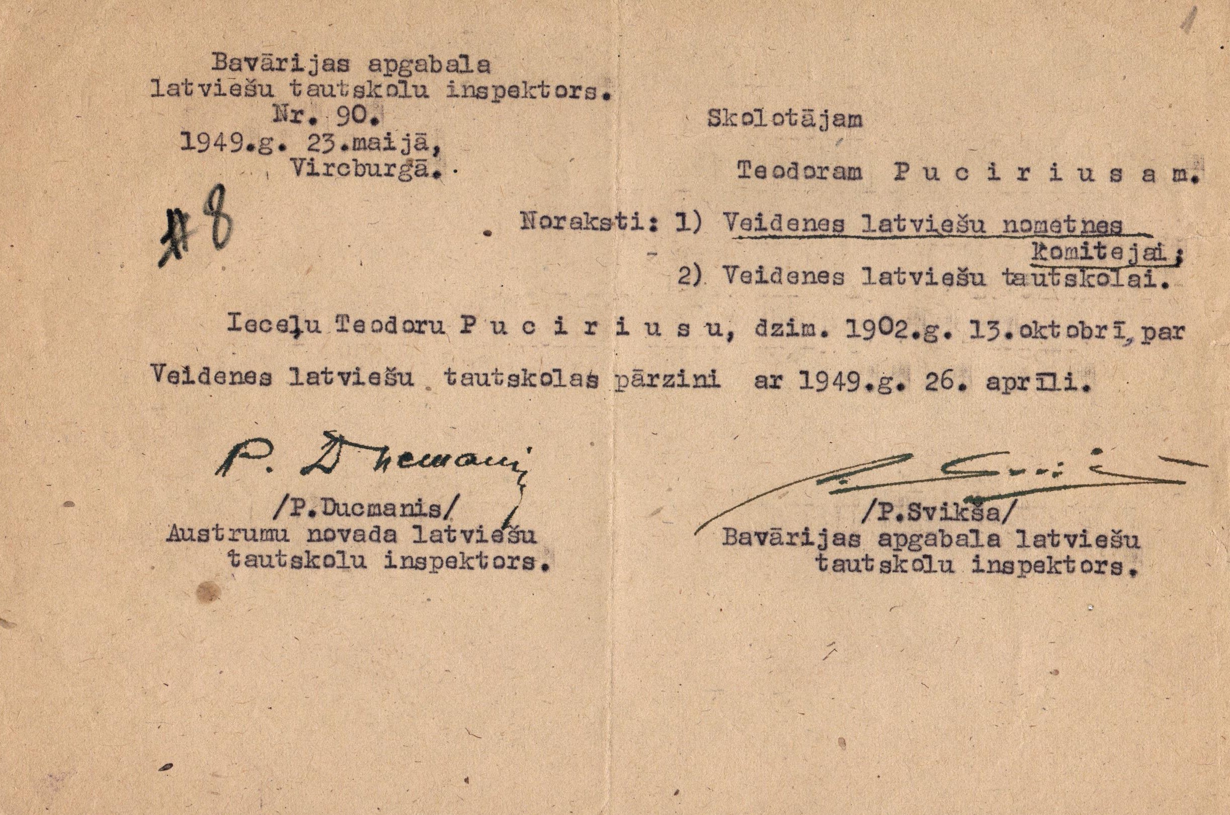 1944. gadā T. Puciriuss devās bēgļu gaitās uz Vāciju, kur turpināja darbu izglītības jomā, no 1945. gada līdz 1950. gadam strādājis latviešu bēgļu ģimnāzijā Fihtenbīles (Fichtenbühl) nometnē par zīmēšanas un vācu valodas skolotāju un no 1949. gada līdz 1950. gadam arī par pārzini Daugavas tautas augstskolā. Šajā laikā viņa sīkplastikas darbu tematika tika papildināta ar bēgļu dzīves motīviem.