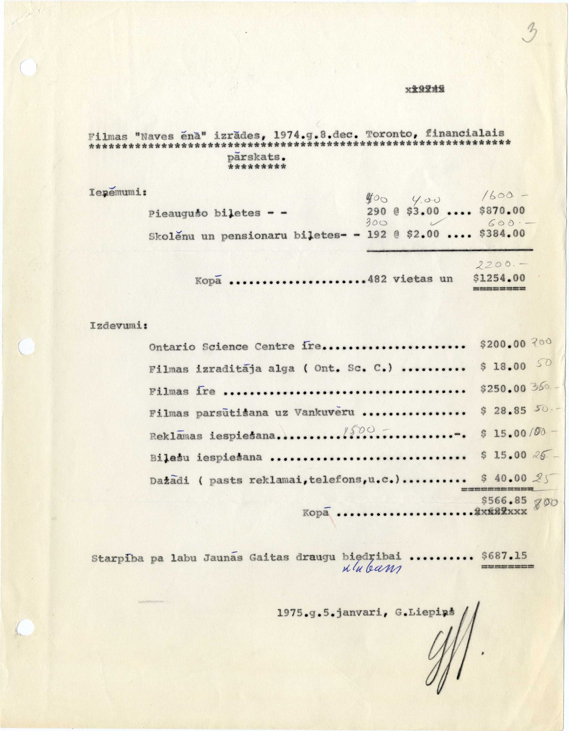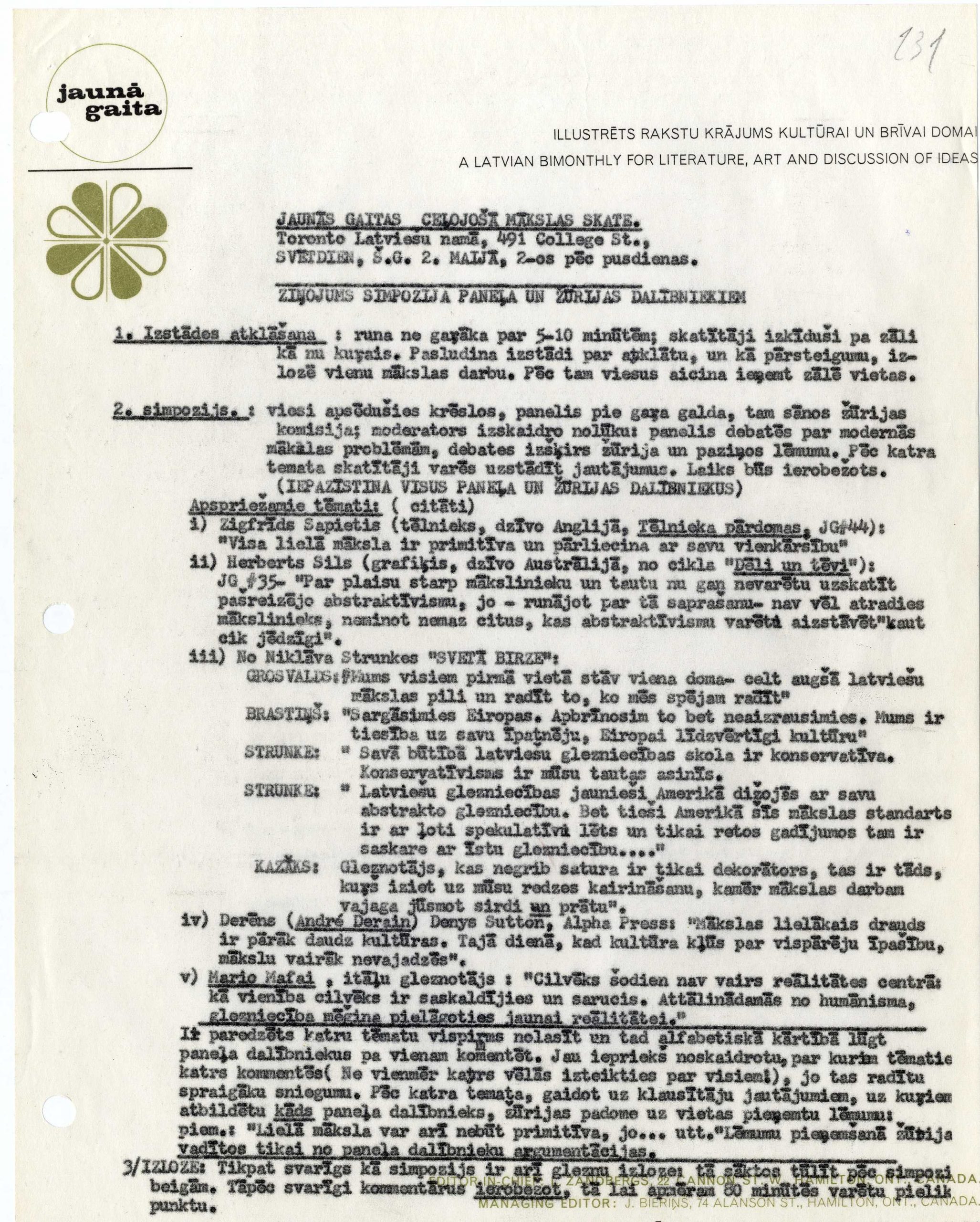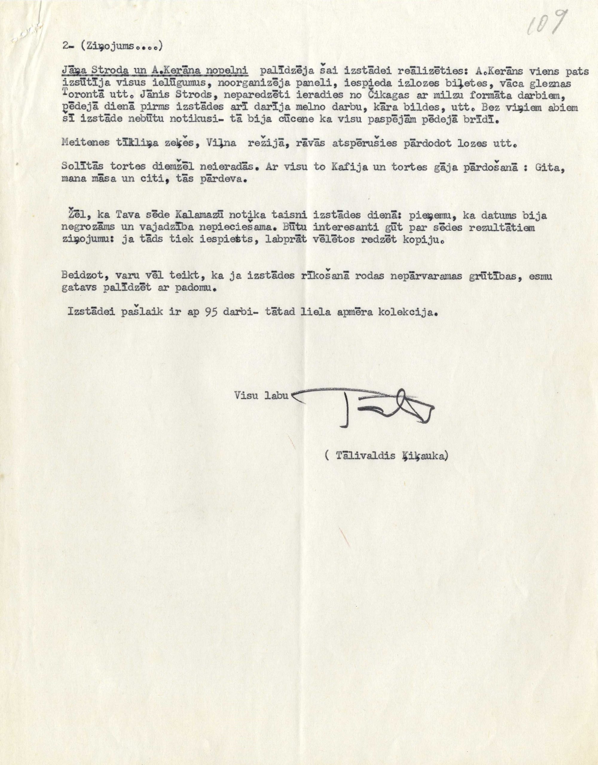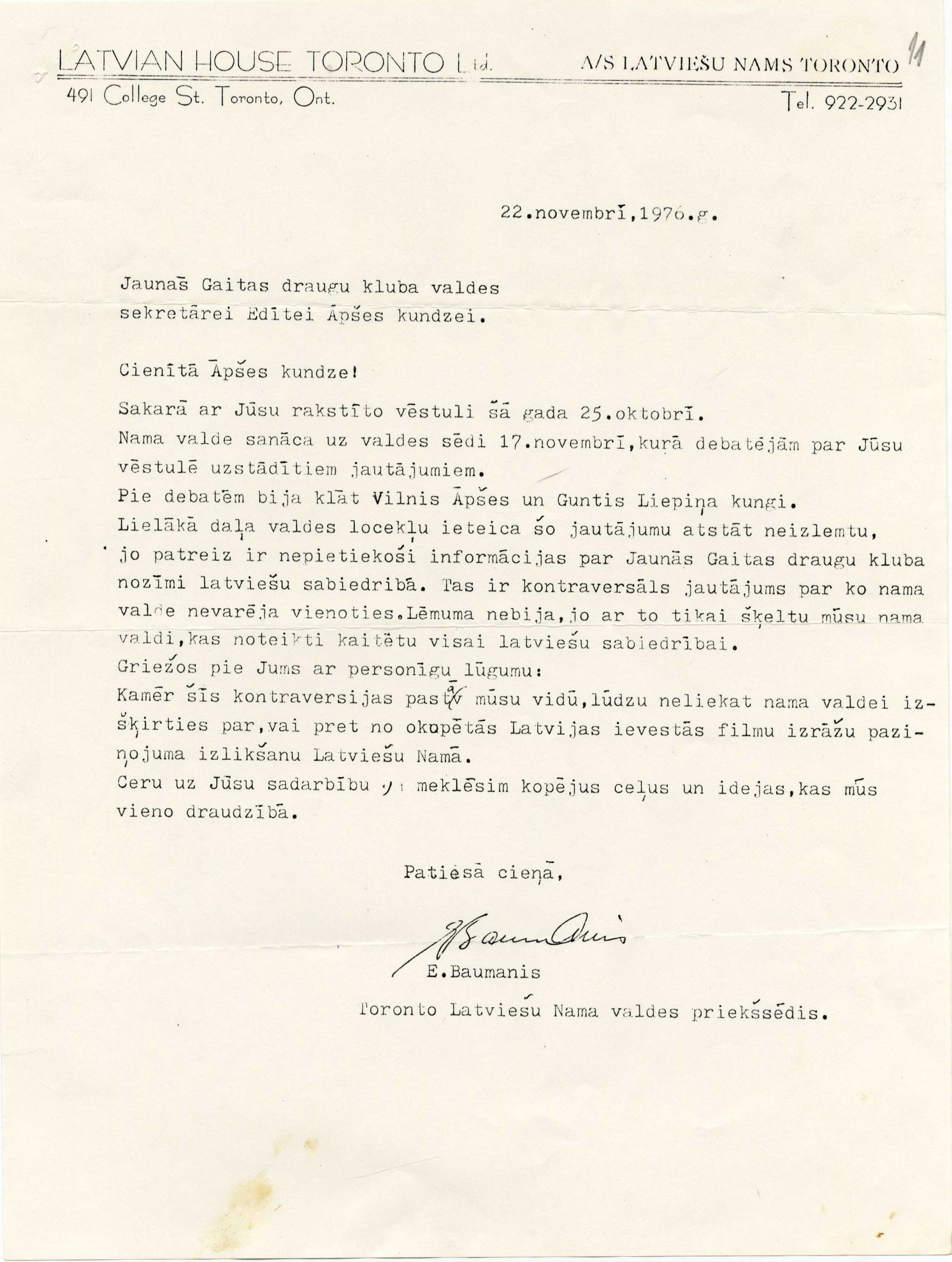 Jaunās Gaitas Draugu kluba biedra Andreja Oltes vēstule Valdim Muižniekam – paziņojums par jaunpieņemtajiem Jaunās Gaitas Draugu kluba darbības principiem, finansiālo stāvokli un valdi. 1961. gada 4. marts. Avots: Latvijas Rakstniecības un mūzikas muzeja krājums.