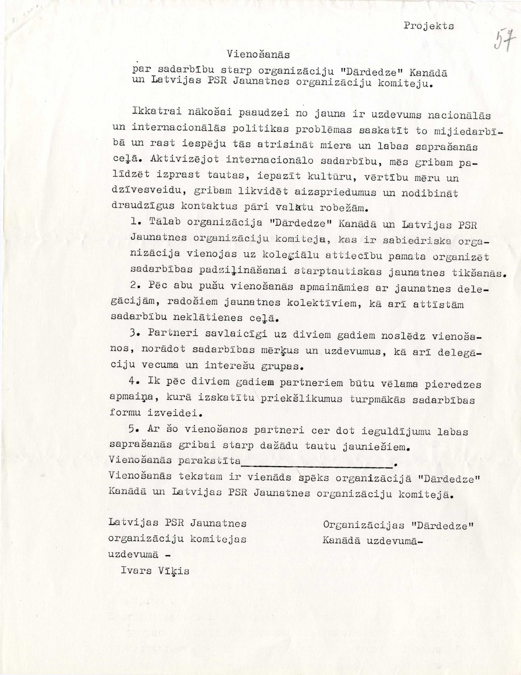 Žurnāla Jaunā Gaita redaktors Laimonis Zandbergs un dzejniece Velta Toma 1987. gada 5. aprīlī Toronto Latviešu centrā. Avots: Latvieši pasaulē – muzeja un pētniecības centra krājums.