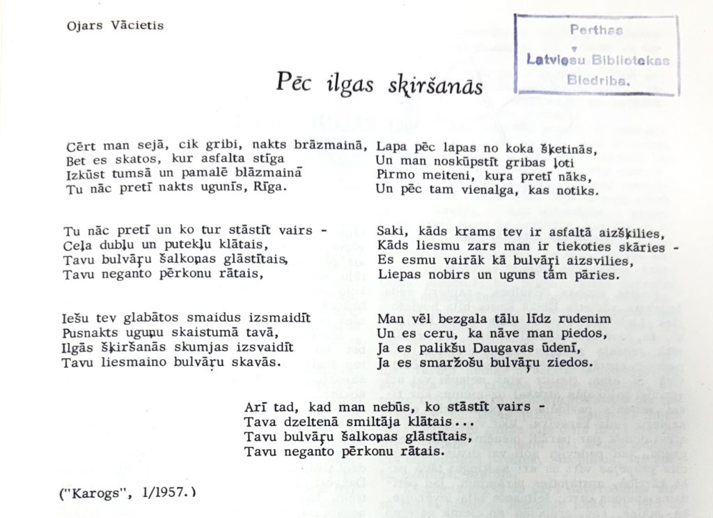 Redakcijai nācies uzklausīt pārmetumus arī par savu lasītāju iepazīstināšanu ar jaunajiem dzejniekiem padomju Latvijā. Piemēram, žurnāla 9. numurā 1957. gadā tika publicēts Ojāra Vācieša dzejolis “Pēc ilgas šķiršanās”. Tas izraisīja asas diskusijas trimdas sabiedrībā un žurnāls tika bargi kritizēts gan kā pārāk politizēts, gan kā pārāk pielaidīgs. Žurnāls apsūdzēts pat nodevībā pret tautas ideāliem.