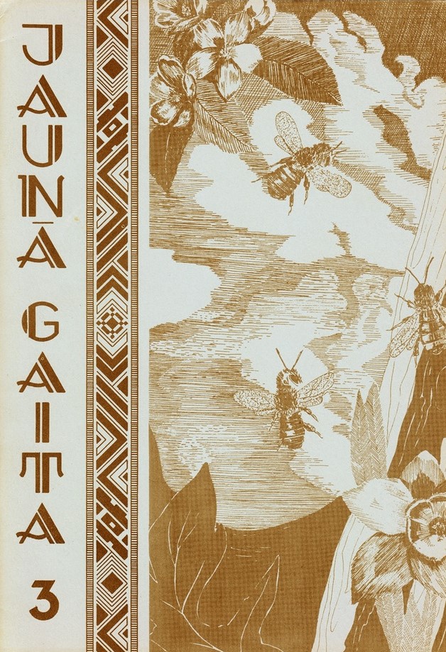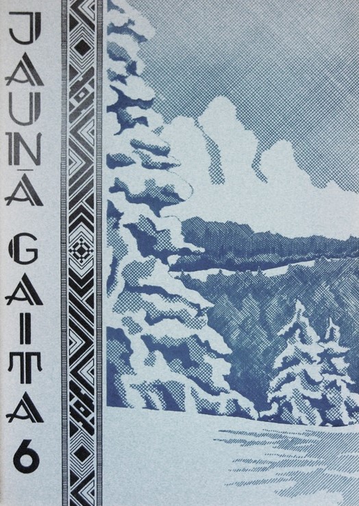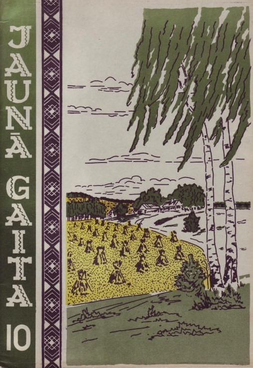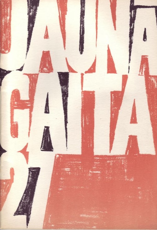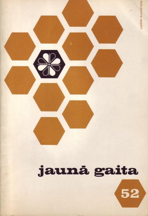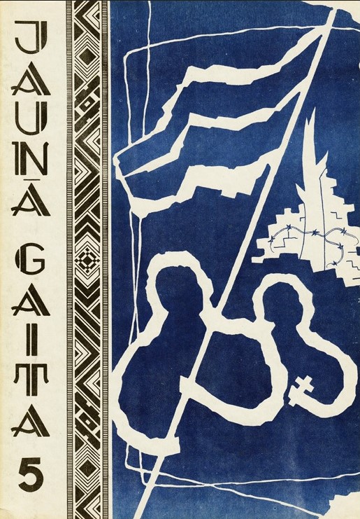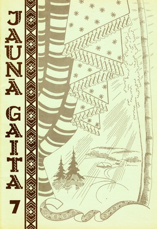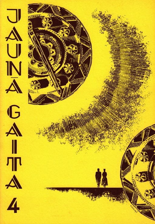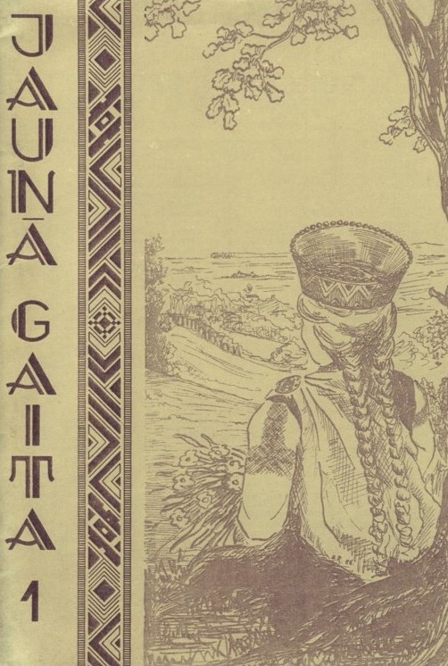 Pirmā numura vāka noformējumu veidoja topošais arhitekts un Jaunās Gaitas tehniskais redaktors Aivars Ronis ar zīmējumu “Laukmalā”. Uz vāka redzama latviešu tautumeita ar garām bizēm un vainagu, sēžot lauku malā ar ziedu klēpi un raugoties tālumā uz Latvijas ainavu – pauguriem, mežiem un jūru. Kreisajā pusē žurnāla nosaukums papildināts ar tautisku ornamentu joslu. Vāks simbolizēja nacionālās saknes, jaunības cerību un skatienu nākotnē. Valters Nollendorfs par pirmajiem vākiem: “Pirmie vāki bija, ko varētu saukt nacionālā reālisma stilā, tautiski. Drusku naivi. Tajā laikā jau bija tas patriotisms, un es tā dažreiz smejos – padomju sistēmā bija sociālais reālisms, mums bija nacionālais reālisms, kurš, piemēram, izpaužas Dziļuma romānos utt.”