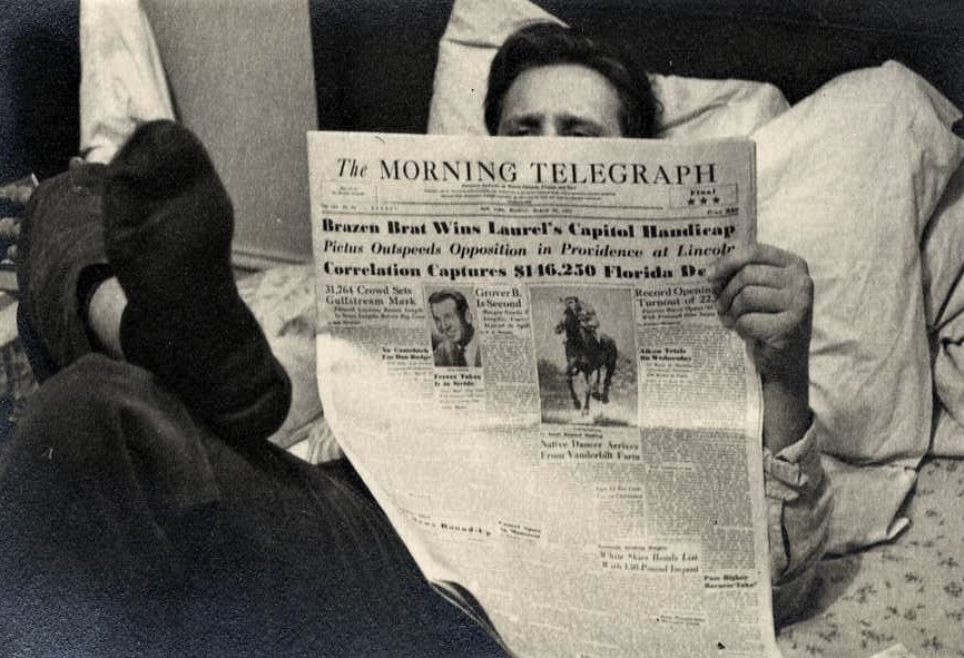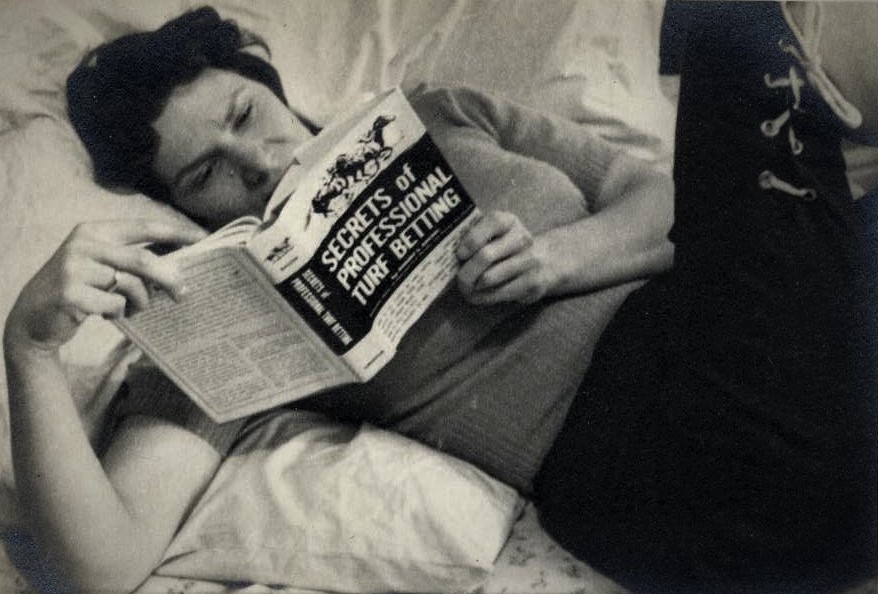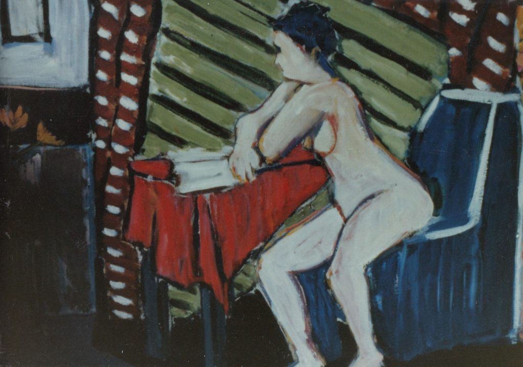Katru dienu, kad eju pa ielu, klausos japāņu valodas lenti. Rudenī atkal sākšu mācīties pa riktīgam – tas ir, klasē. Tas nekas, ka pārējie skolnieki atkal būs 30–40 gadus jaunāki. Franču valodu atkārtoju, jo padzirdēju, ka Rīgas balets, piepalīdzot Vasiljevam un Maksimovai, uzstāsies Parīzē. Divas nedēļas aprīļa mēnesī. Varbūt, ka aizšaušu uz Parīzi. [..] Uz fotogrāfijas viena no manām pēdējām bildēm. Lielums apmēram 1,25×0,75 m. Lūdzu, neaizrādiet – zinu, ka Matisse iespaids. Bez tam darbs paviršs, bez rūpīgas Rīgas skolas (tagadējās!) nostrādājuma! Ideoloģiski bilde arī nekam neder: ne viņa strādā, ne cieš, ne uzmundrina. Slinkumā – nevīžo pat apģērbties – lasa Kurt Mahlerin. Neko nevaru darīt – vislabāk man patīk mālēt plikņus.