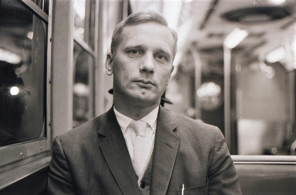Ceļā ar metro no mākslinieces Ausmas Matcates izstādes Ņujorkas centrā uz mājām Kvīnsā, 1961.gads. Avots: LNA LVA F.1996.
