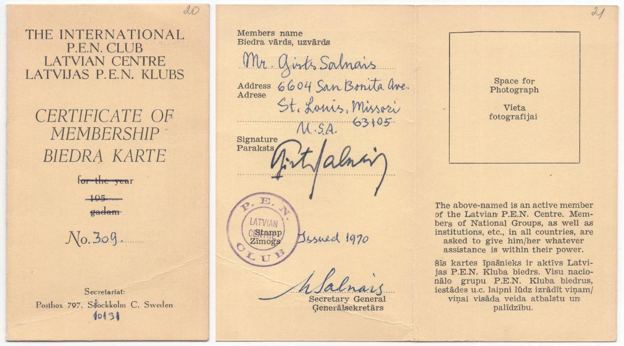 Ģirts Salnais aktīvi uzturēja sakarus ar trimdas literātiem un māksliniekiem, fondā atrodama viņa sarakste ar Zinaīdu Lazdu, Ritu Liepu, Niklāvu Strunki u.c., kā arī dažādu latviešu literātu un kultūras darbinieku, kā arī pasākumu fotogrāfijas.