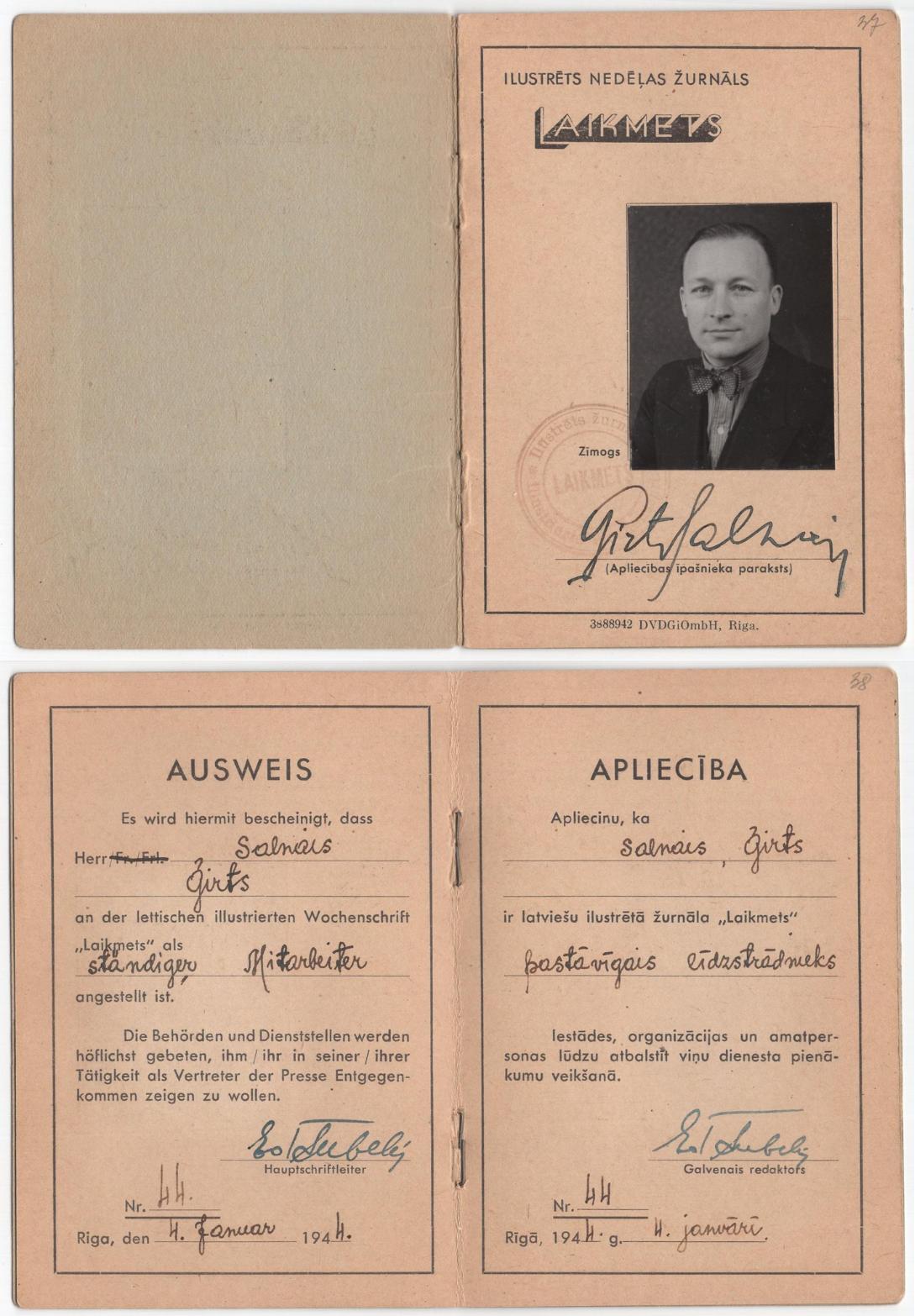 Fondā iekļauti arī Ģirta Salnā personas dokumenti, ģimenes fotogrāfijas un atsevišķi Voldemāra un Mildas Salno dokumenti.