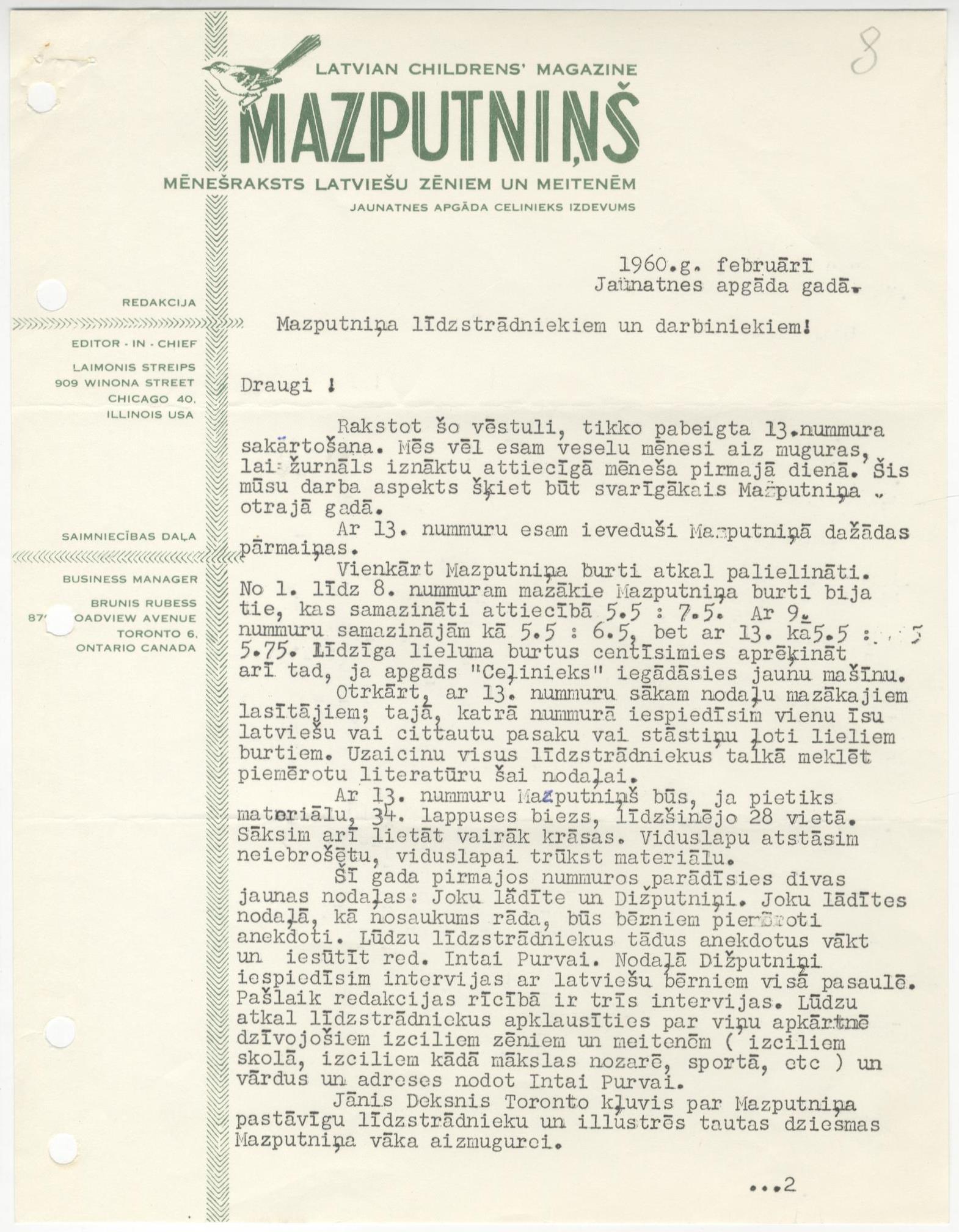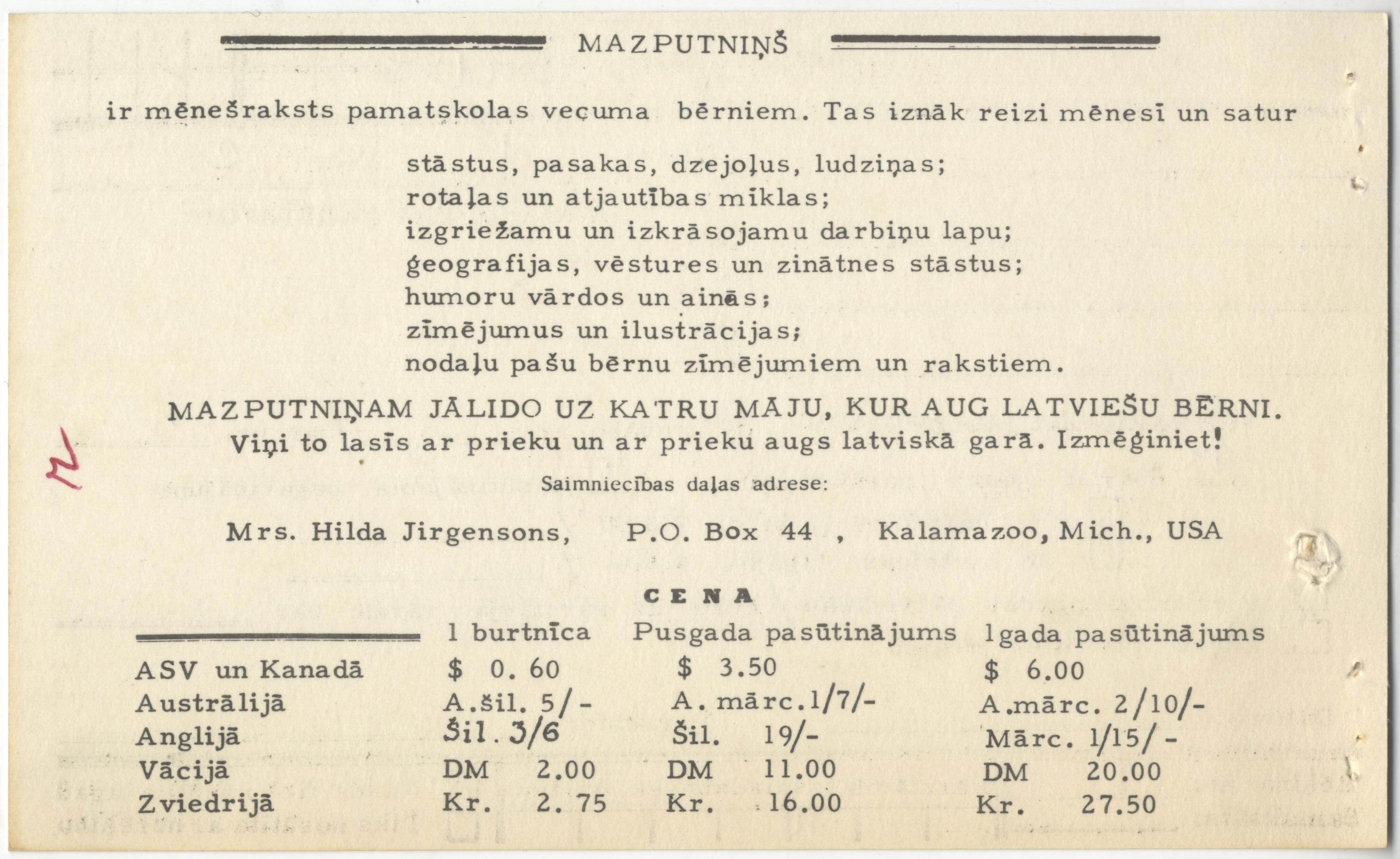 Aicinām ielūkoties Latvijas Valsts arhīva dokumentos, kas saistīti ar mēnešraksta “Mazputniņš” izdošanu.