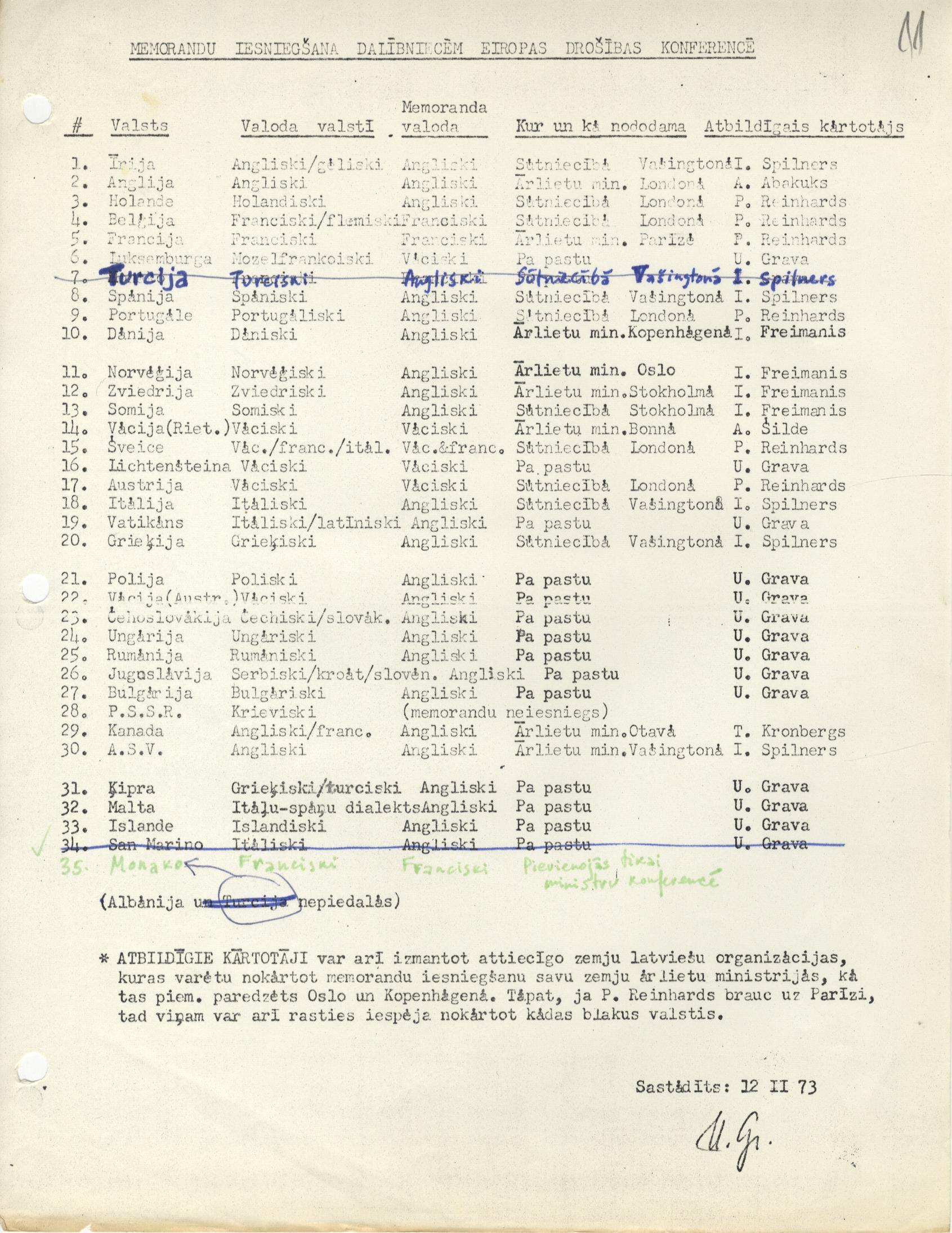 Kad 20. gs. 70. gados mazinājās starptautiskais saspīlējums, rietumvalstis un komunistisko valstu bloks meklēja ceļus dialogam. 1973. gadā Helsinkos notika konference EDSA nolīguma sagatavošanai. Bez daudziem citiem jautājumiem plānotais nolīgums apstiprinātu arī valstu robežu neaizskaramības principu, tādējādi faktiski atzīstot Baltijas valstu okupāciju.