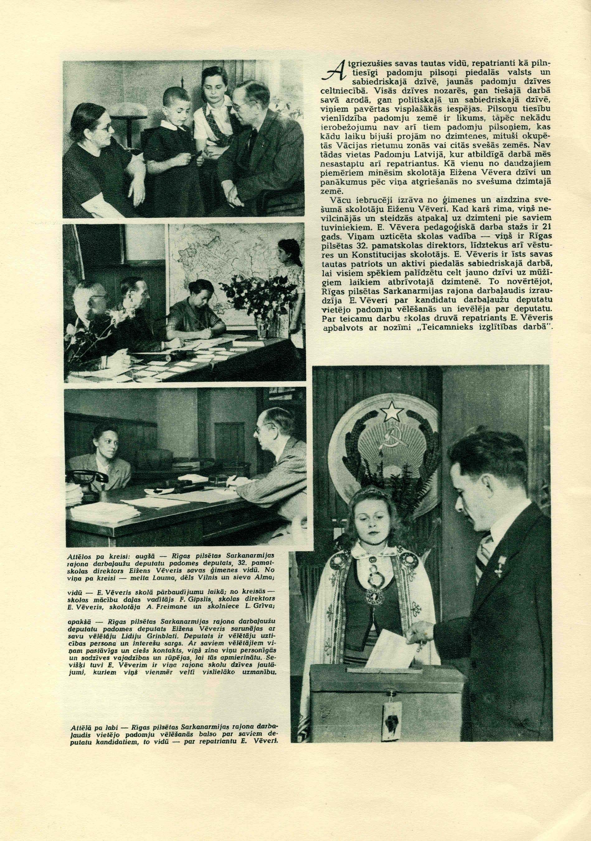 | Padomju propagandas raksts "Dzimtajā zemē" par repatrianta ievēlēšanu par vietējo padomju deputātu. 1949. gads. Privātarhīvs |