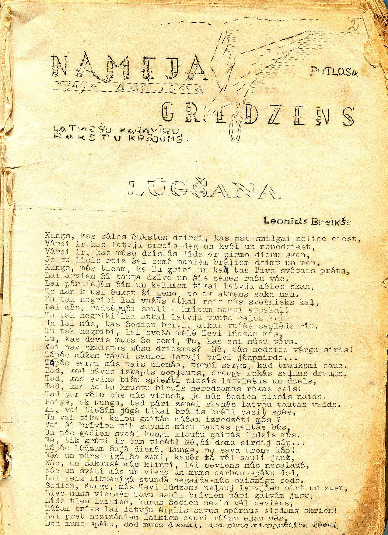 Latviešu karavīru Putlosā rakstu krājums "Nameja gredzens". 1945. gada augusts.