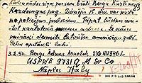 Latviešu karagūstekņa Itālijā sūtītā pastkarte.