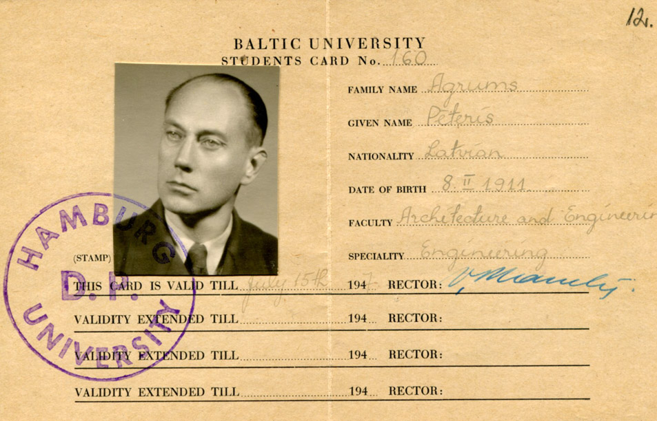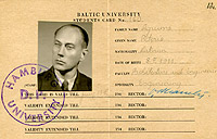 | Baltijas Universitātes studenta karte. 1947. gads. LVA, 1971. f., 1. apr., 66. l., 12. lp. |