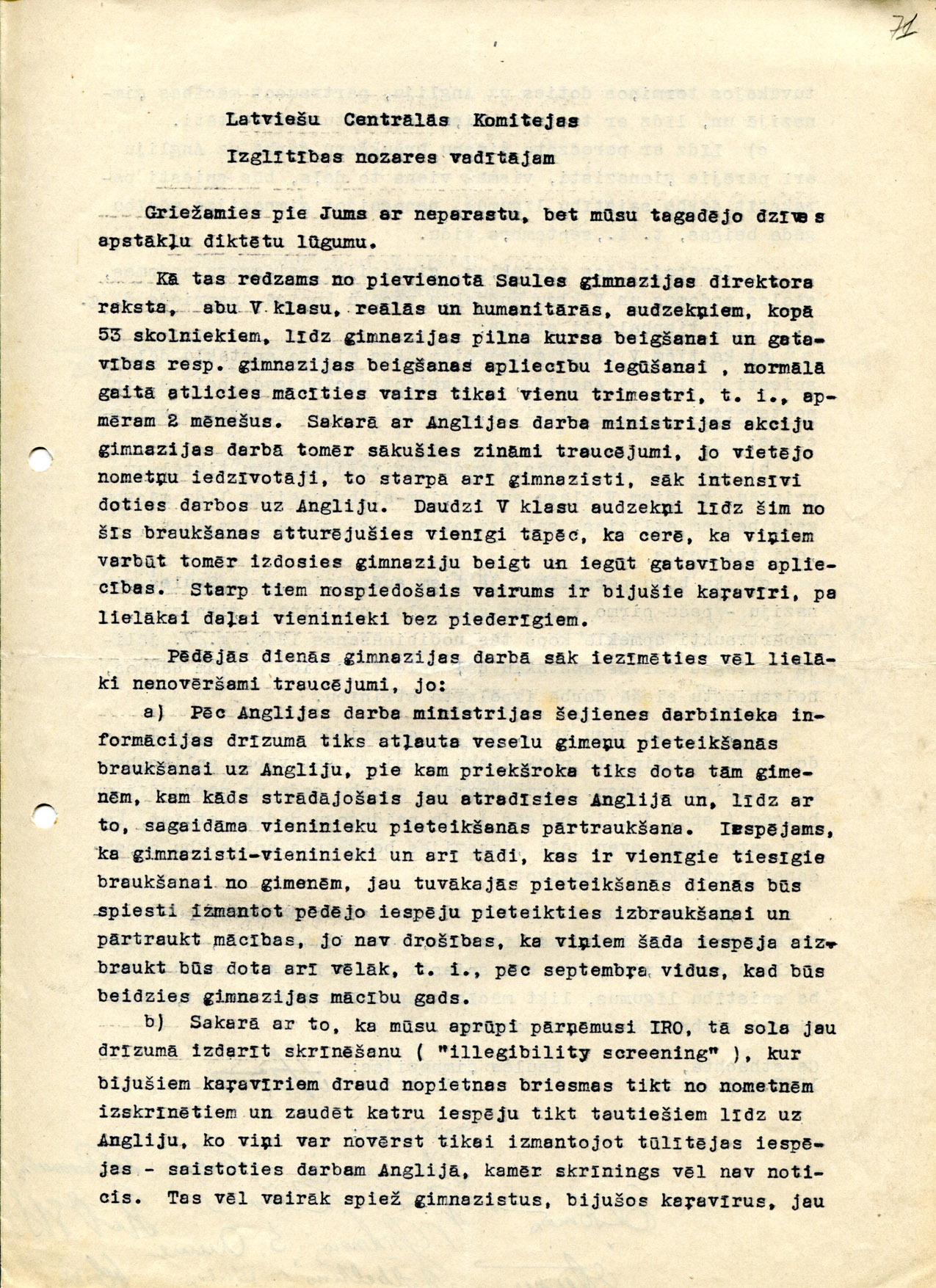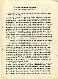 | "Saules" ģimnāzijas direktora un skolotāju ziņojums Latviešu Centrālās komitejas Izglītības nozares vadītājam. LVA, 2335. f., 1. apr., 97. l., 71., 72. lp. |