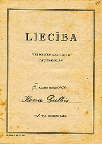 | Veidenes latviešu tautskolas liecība. 1949. gads. LVA, 2250. f., 2v. apr., 6. l., 41. lp. |