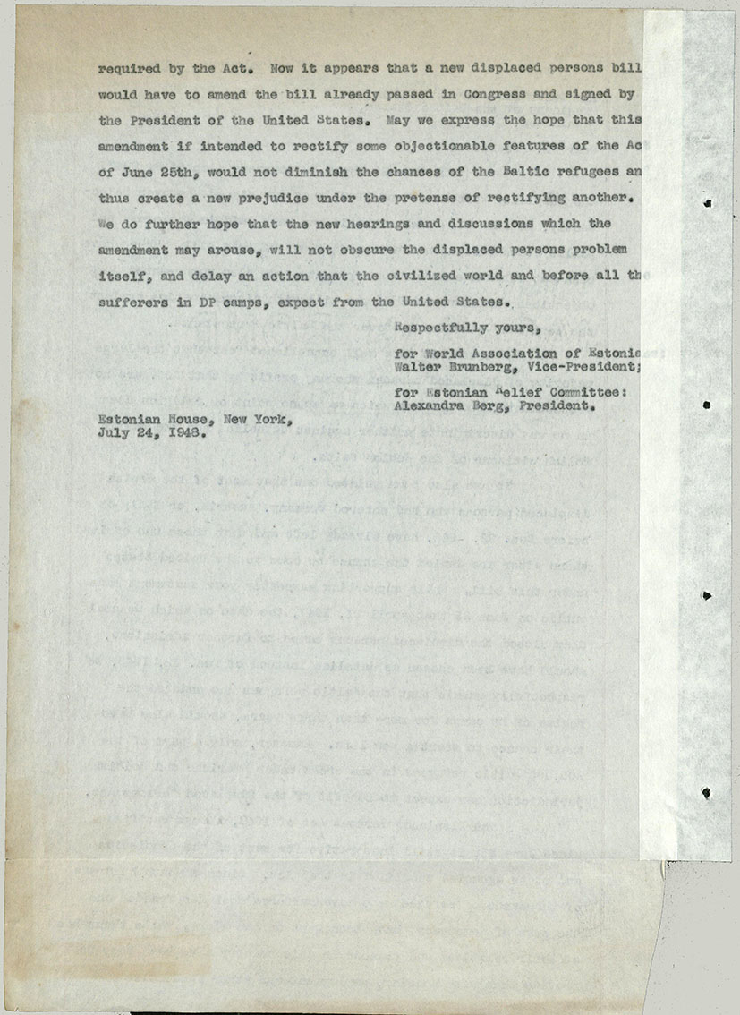 | Eesti Abistamise Komitee pöördumine Ameerika Ühendriikide presidendi Harry S. Trumani poole. 24. juuli 1948. ERA.1622.2.61, lk 21–22 (digiteeritud, www.ra.ee/saaga) |