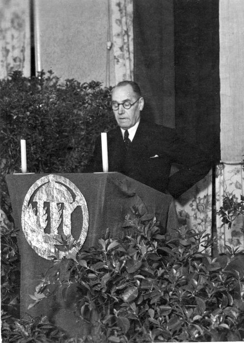 | Professor Hugo Kaho Tartu Ülikooli aastapäeva aktusel Göttingenis 1945. aastal. VEMU FK.61-12 |