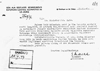 Ühendriikide tsooni Eestlaste Keskesinduse abiesimehe Elias Kasaki kiri peakonsul Johannes Kaivule palvega külastada pagulaslaagreid ja aidata kaasa nii Ühendriikidesse emigreerujate kui ka Saksamaale jäävate kaasmaalaste probleemide lahendamisele. 25. november 1949.