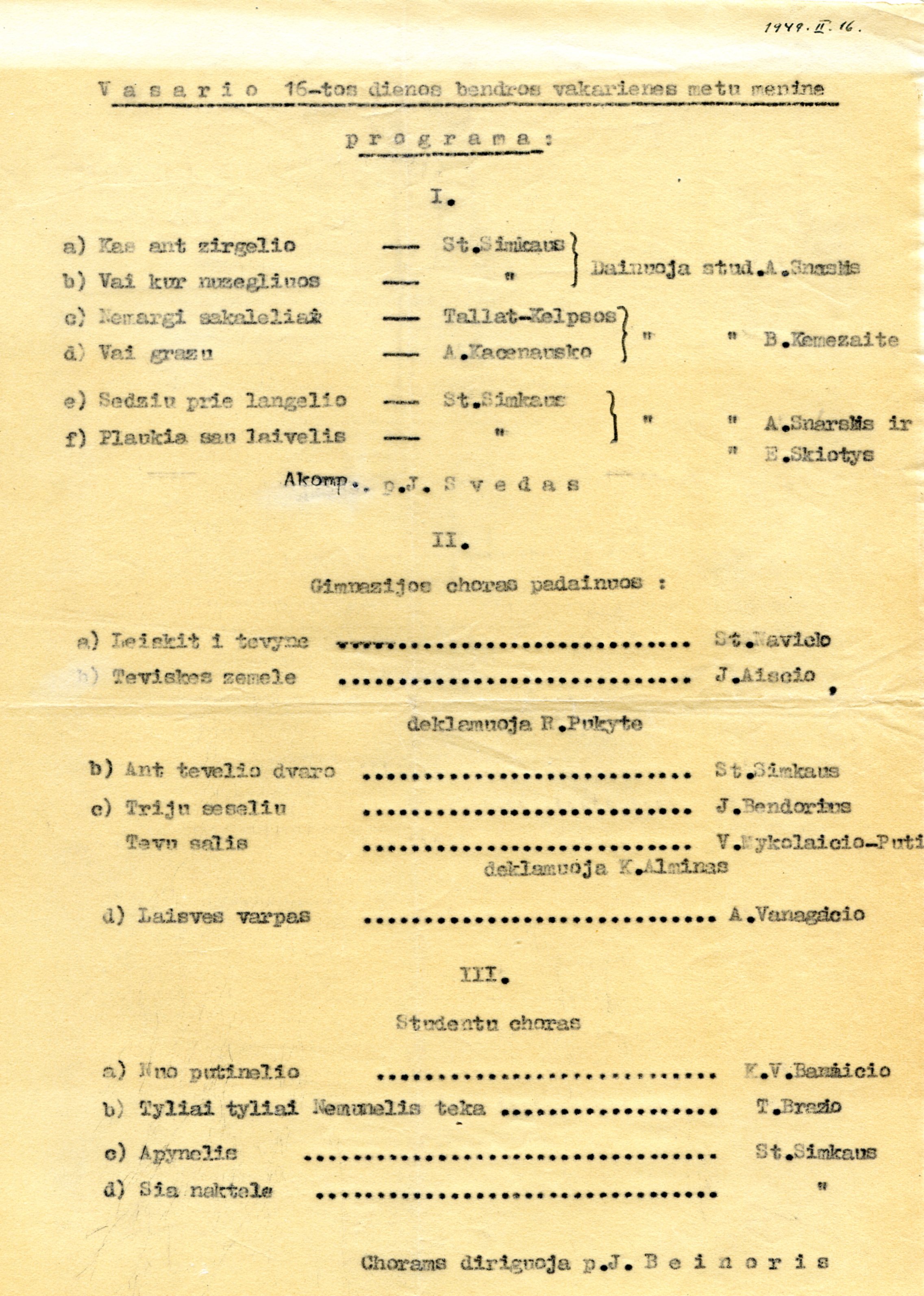 | Vasario 16-osios minėjimo Pabaltijo universitete meninė programa, 1949 m., LNB RKRS F52:307L |