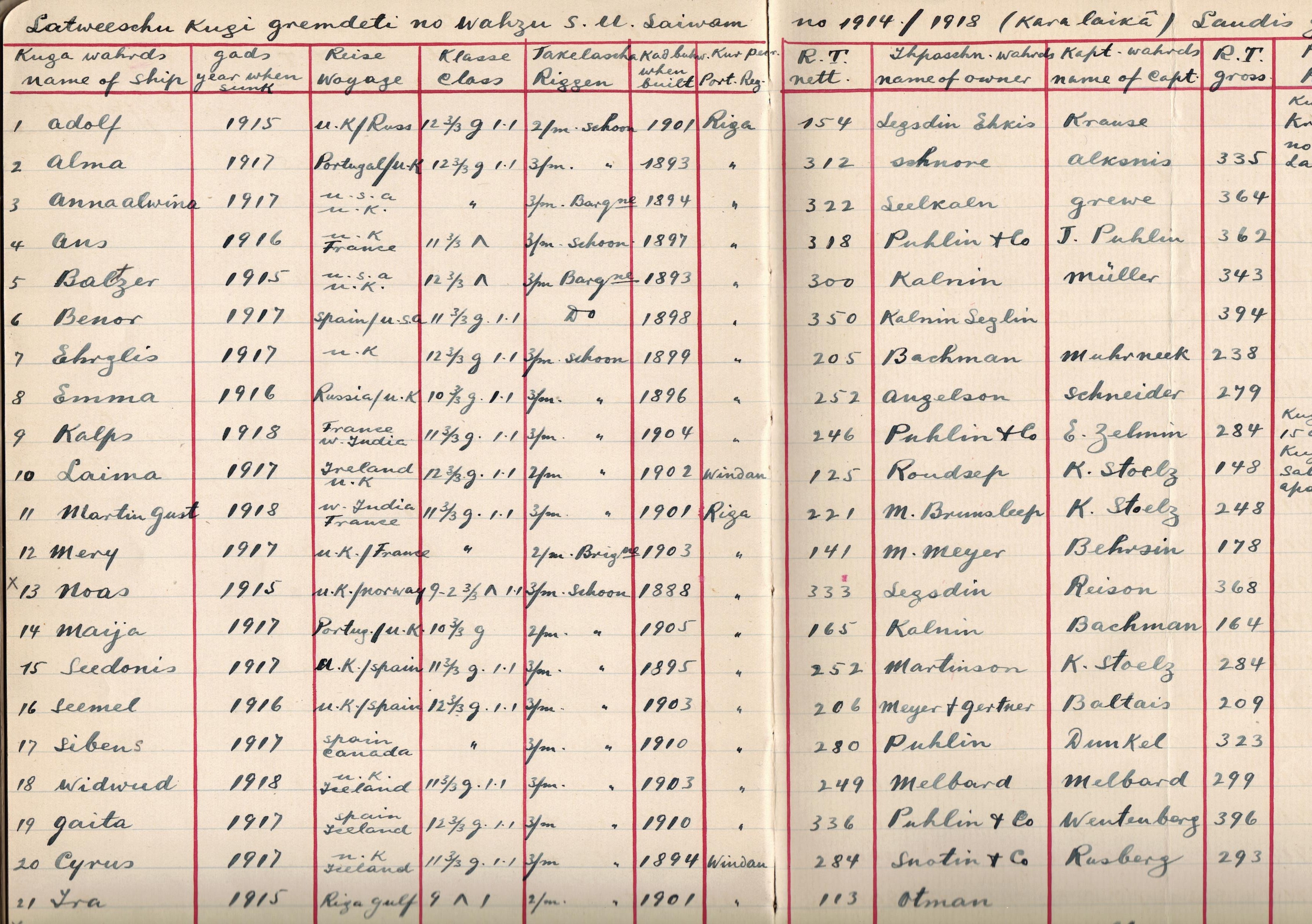 Ernests Celmiņš bija kuģu īpašniekiem “Pūliņš & Co” piederošā trīsmastu burukuģa “Kalps” kapteinis. Kuģi ceļā no Francijas uz Indiju 1918.gada 15.augustā pie Gibraltāra nogremdēja vācu zemūdene. Liktenis sagriezās tā, ka atlikušo mūžu līdz 1919.gada 5.februārim Ernests Celmiņš pavadīja Lielbritānijā, Liverpūlē un Londonā.
