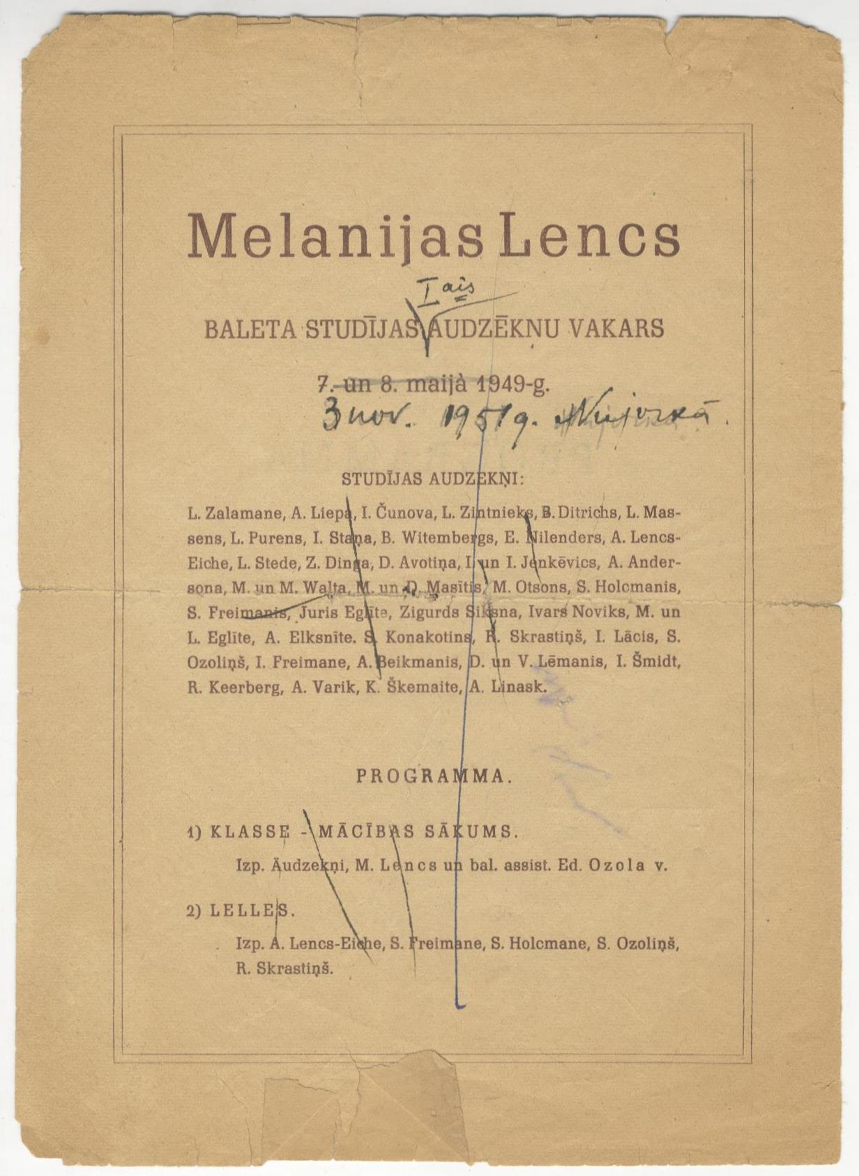 Melānija Lence-Eihe jau bērnībā uzstājusies Rīgas Vācu teātrī, vēlāk apguvusi baletu Maskavā, pēc 1917. gada Oktobra apvērsuma devās uz Harkivu, kur dienā mācījās baleta studijā, bet naktīs strādāja par telegrāfisti, vēlāk dejojot Harkivas operetes teātrī. 1920. gadā, kad māksliniece atgriezās Latvijā, viņai līdzi bija “nekas vairāk kā maisiņš ar baleta kurpēm un treniņa piederumiem” un cerība par iekļaušanu Nacionālās operas baleta trupā.