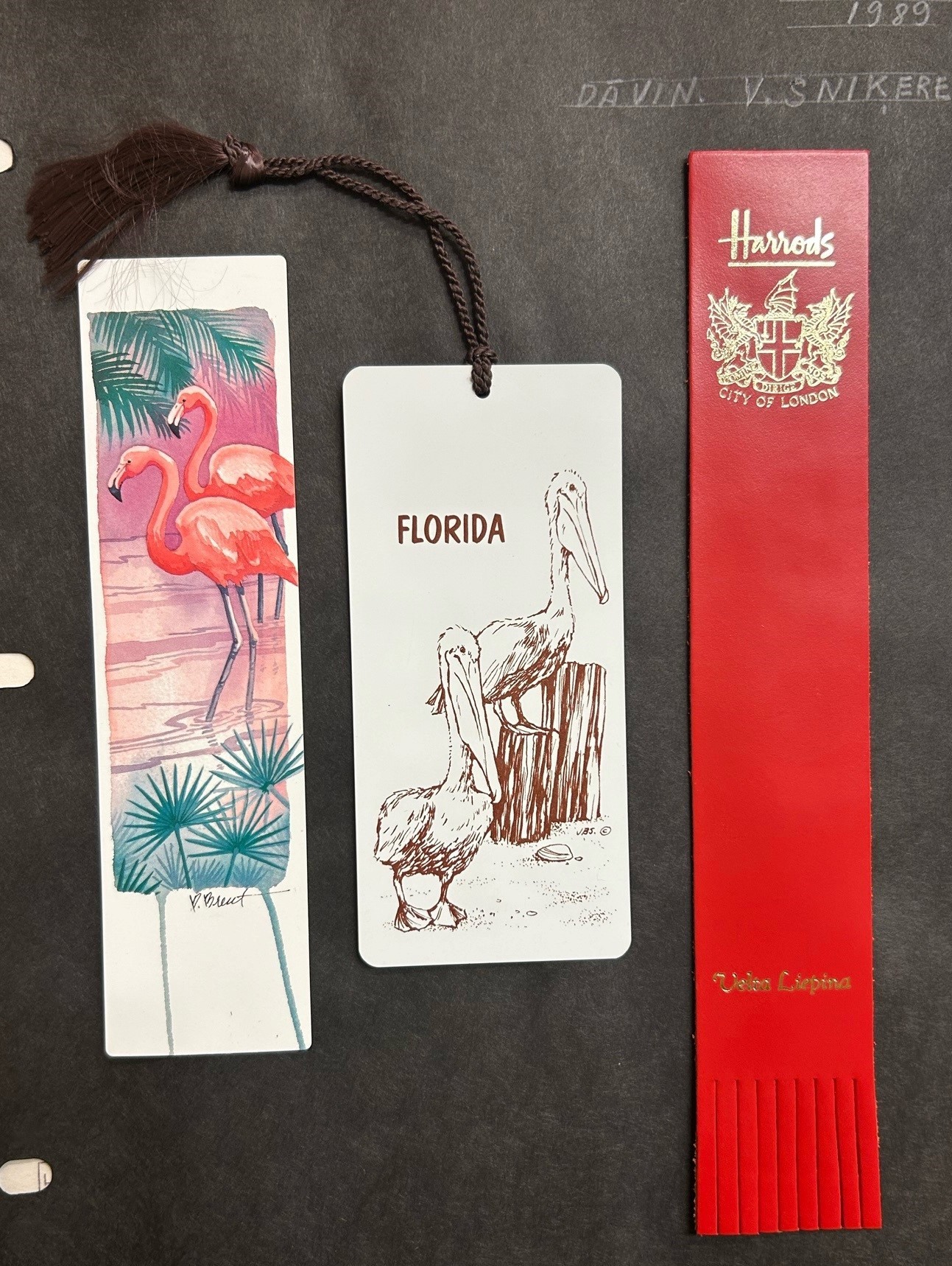 Inženieris un kolekcionārs Hugo Liepiņš, kurš bija pievērsies grāmatzīmju jeb palīgrīku grāmatu lasīšanai - vajadzīgās lappuses atrašanai - kolekcionēšanai, dzīves laikā sakrājis vairāk nekā 400 šādu dažādu materiālu, formas un izmēru izstrādājumu. H. Liepiņš studējis Latvijas Valsts universitātes Inženierzinātņu fakultātē un 1944. gadā (tolaik Rīgas Universitātē) ieguvis inženiera-elektrotehniķa diplomu. Paralēli studijām viņš strādājis savā profesijā Latvijas Pasta un telegrāfa departamentā, Ķeguma spēkstacijā un Rīgas pilsētas elektrības uzņēmumā. Studiju laikā pievienojies latviešu studentu akadēmiskajai organizācijai - konkordijai “Zelmenis”. Tad nokļuvis Vācijā, kur strādājis lidmašīnu būves rūpnīcā un bijis arī gaisa spēku izpalīgs. Pēc tam ticis smagi ievainots un īsi pirms Otrā pasaules kara beigām atlaists no darba. Tad H. Liepiņš ieguva darbu Hamburgā grāmatu spiestuvē, kur amata pienākumos ietilpa grāmatzīmju krāsošana ar akvareļkrāsām. Dažas no tām viņš varējis paturēt arī sev, un tas aizsāka arī viņa kā kolekcionāra darbību. No 1946. gada, kad kolekcija sāka veidoties, to krāšana turpinājās līdz pat 1997. gadam.