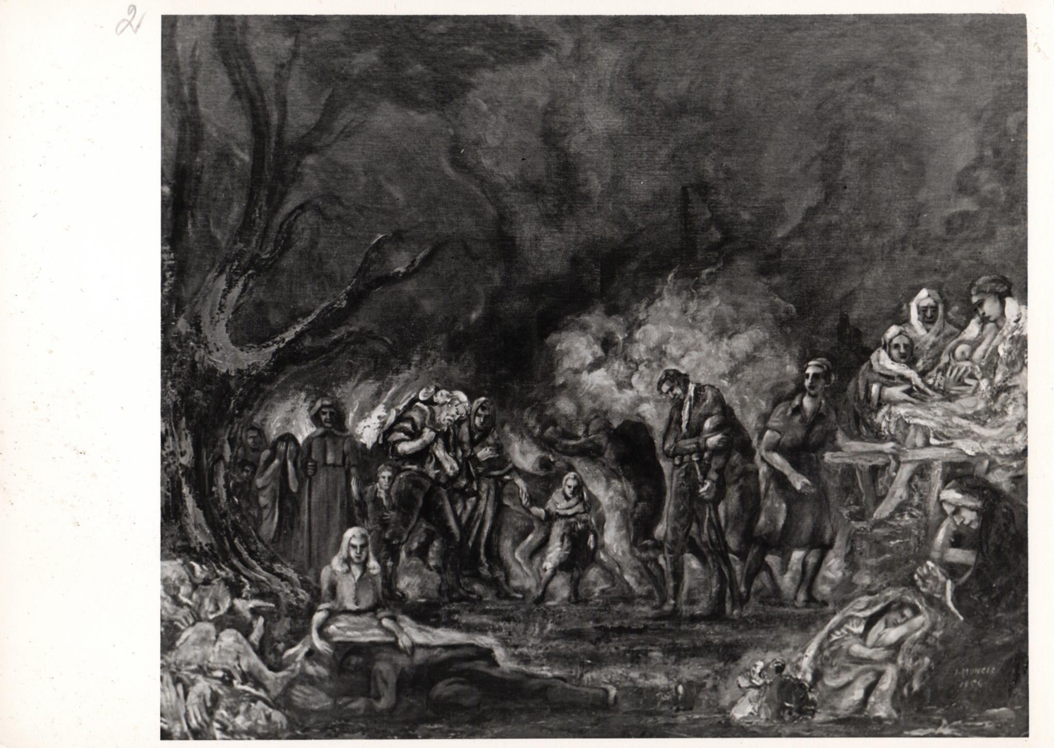 1944. gadā J. Muncis devies bēgļu gaitās uz Vāciju, strādājis par pedagogu Fisenes (Füssen) apkārtnē Bavārijā un 2 gadus vadījis tautas augstskolu Augsburgā (Augsburg) - Haunštetenes (Haunstetten) nometnē. Vācijā viņš sarakstījis patriotisku drāmu - triloģiju "Daugavieši".