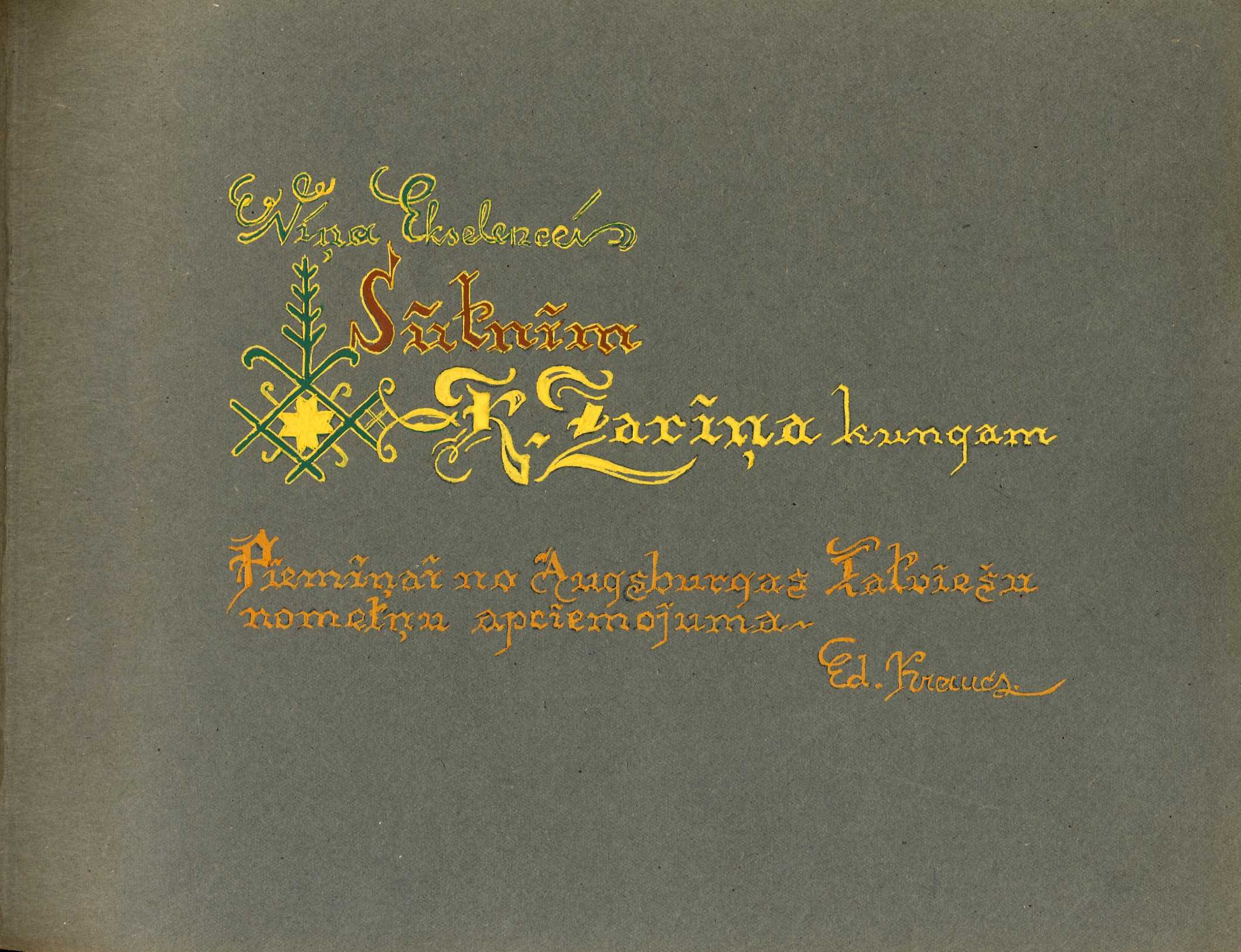 Katrs albums ir noformēts kā dāvana Kārlim Zariņam, ar kaligrāfiskiem ierakstiem, greznu vāku apdari, kvalitatīvām melnbaltām fotogrāfijām, anotācijām, aprakstiem latviešu, vācu un angļu valodā, kā arī ar dzejoļiem, zīmējumiem un veltījumu ierakstiem.