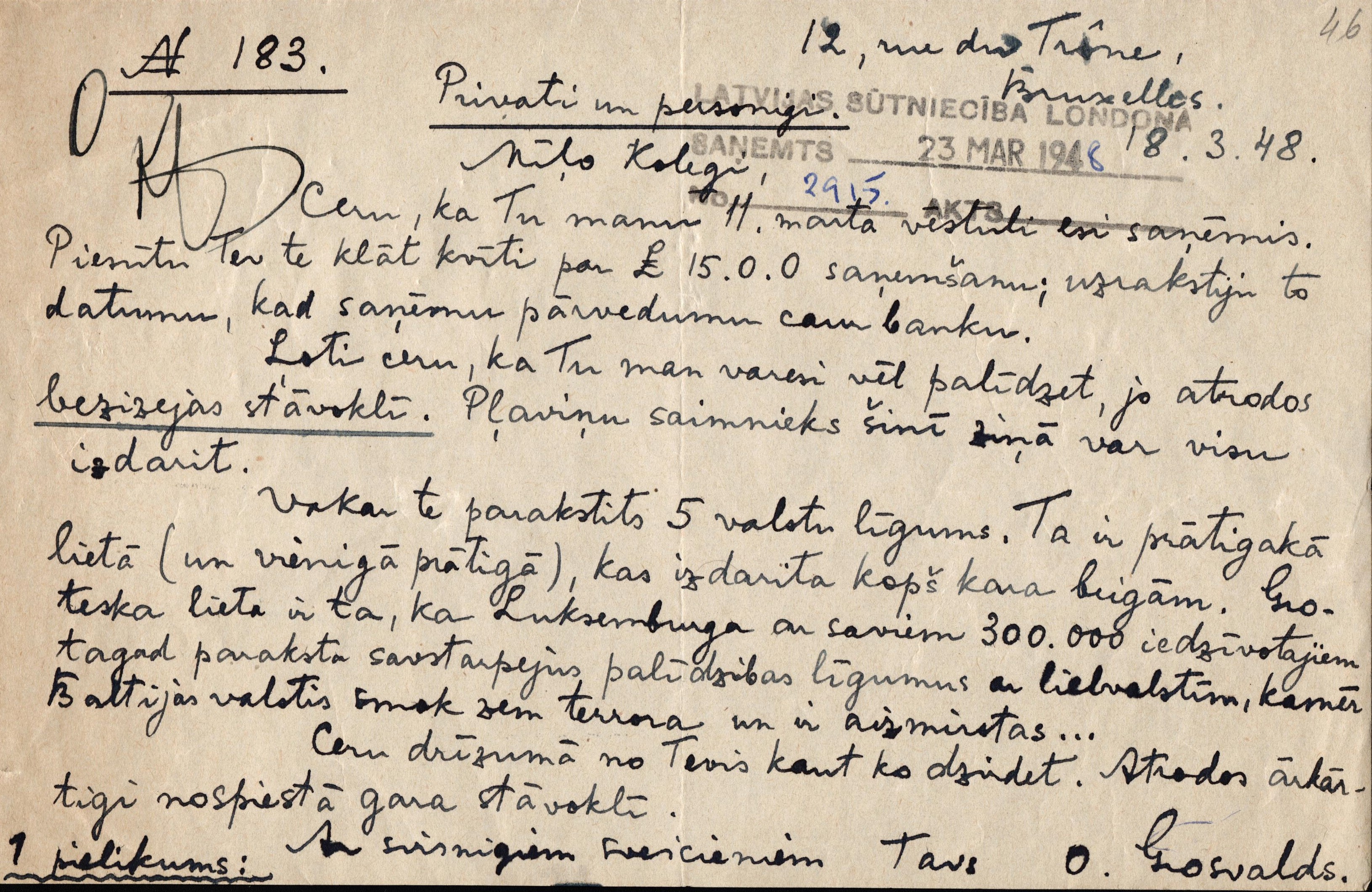 Saskaņā ar Latvijas Republikas Ministru kabineta 1940. gada 17. maijā piešķirtajām ārkārtējām pilnvarām Latvijas sūtnis Londonā Kārlis Zariņš kļuva par Latvijas diplomātiskā dienesta vadītāju.