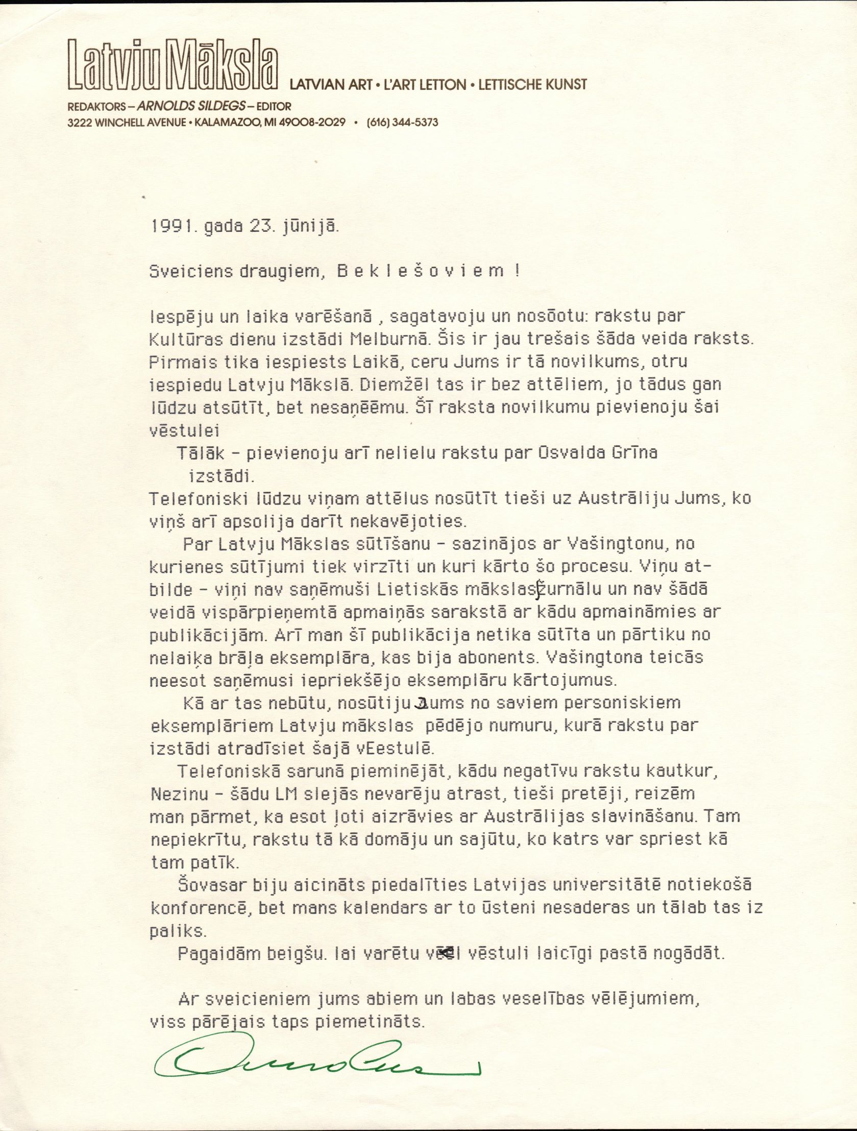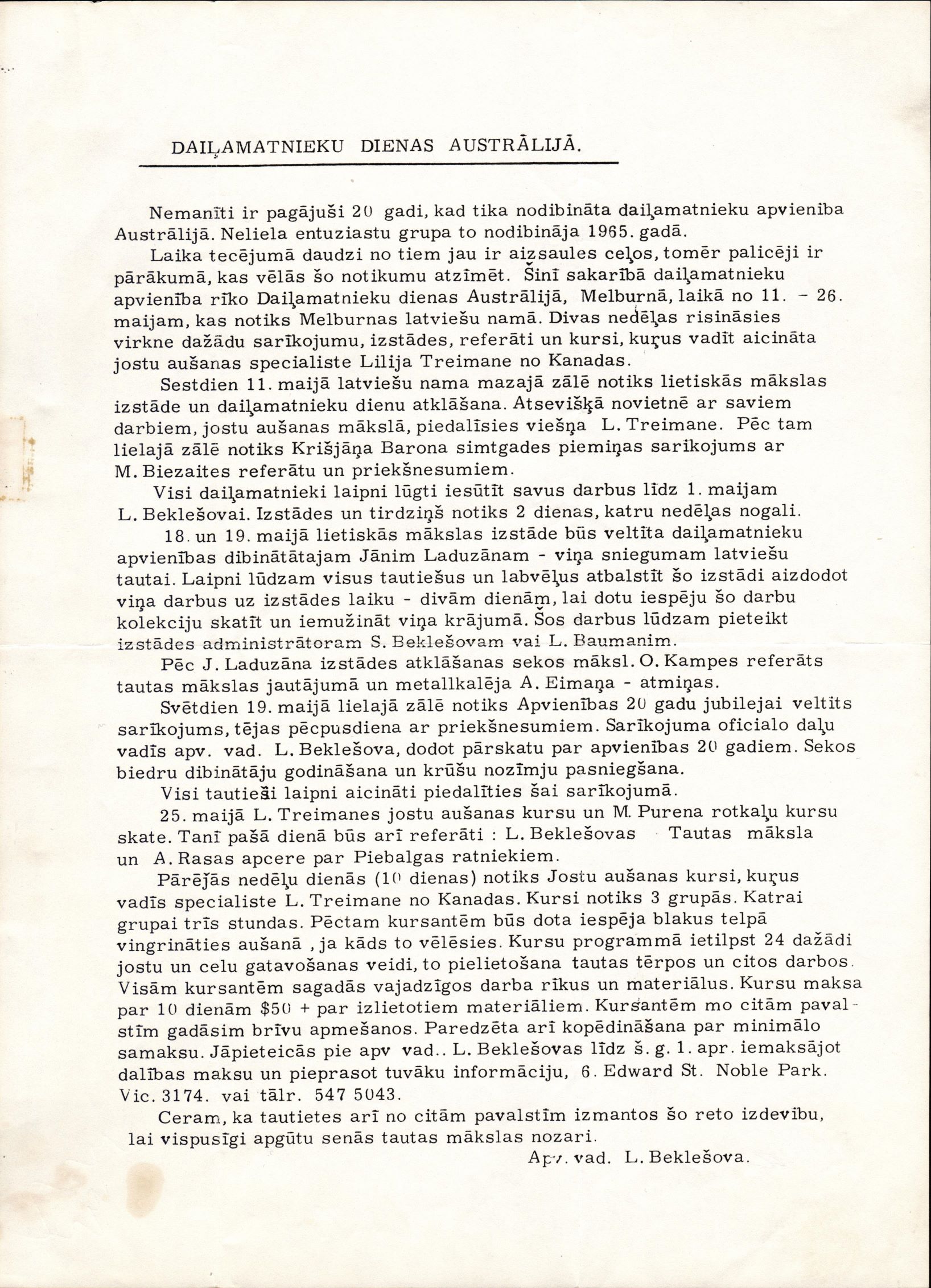Beklešova Lidija (dzimusi Oberte, 1918-2006), daiļamatniece, Latviešu daiļamatnieku apvienības priekšsēdētāja, Beklešovs Sergejs (dz.1918), daiļamatnieks (Austrālija) /ģimenes fonds
