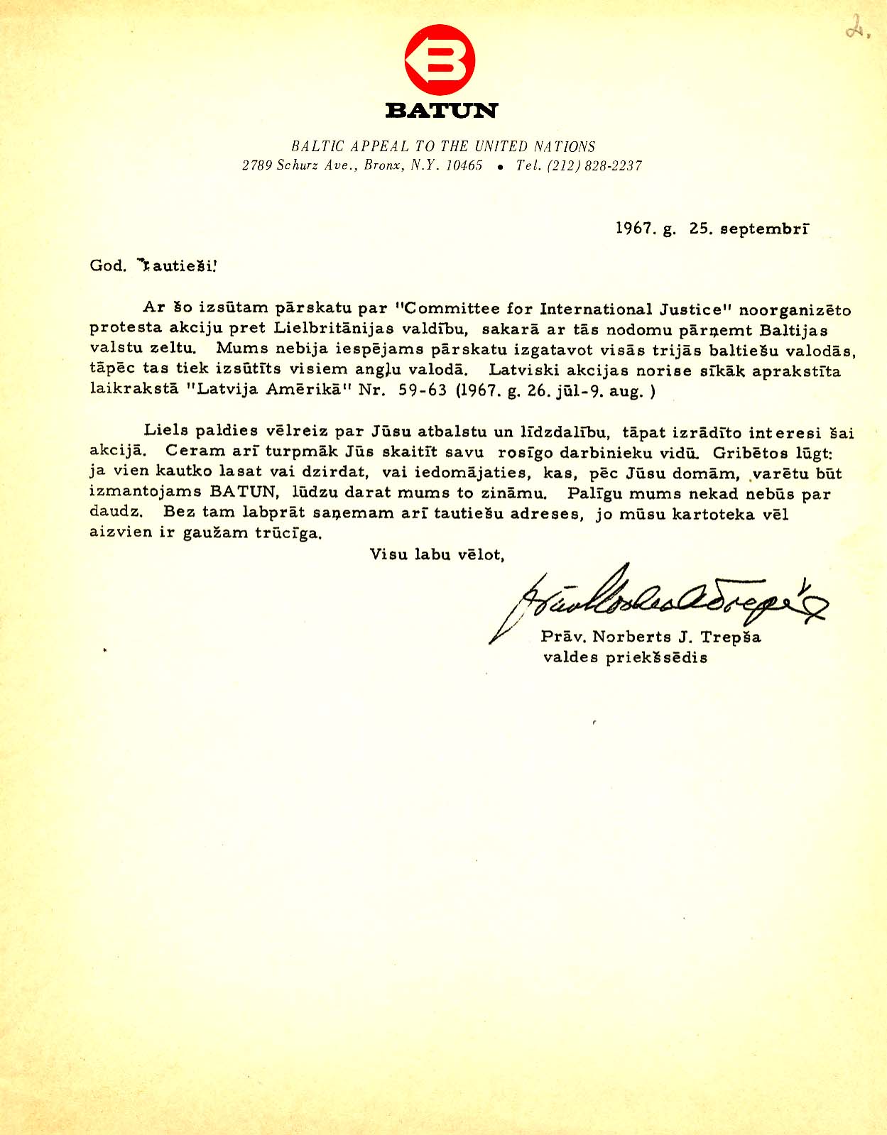 Trimdas latviešu dokumenti, fonda nr. 2250, apr. 67-v.
