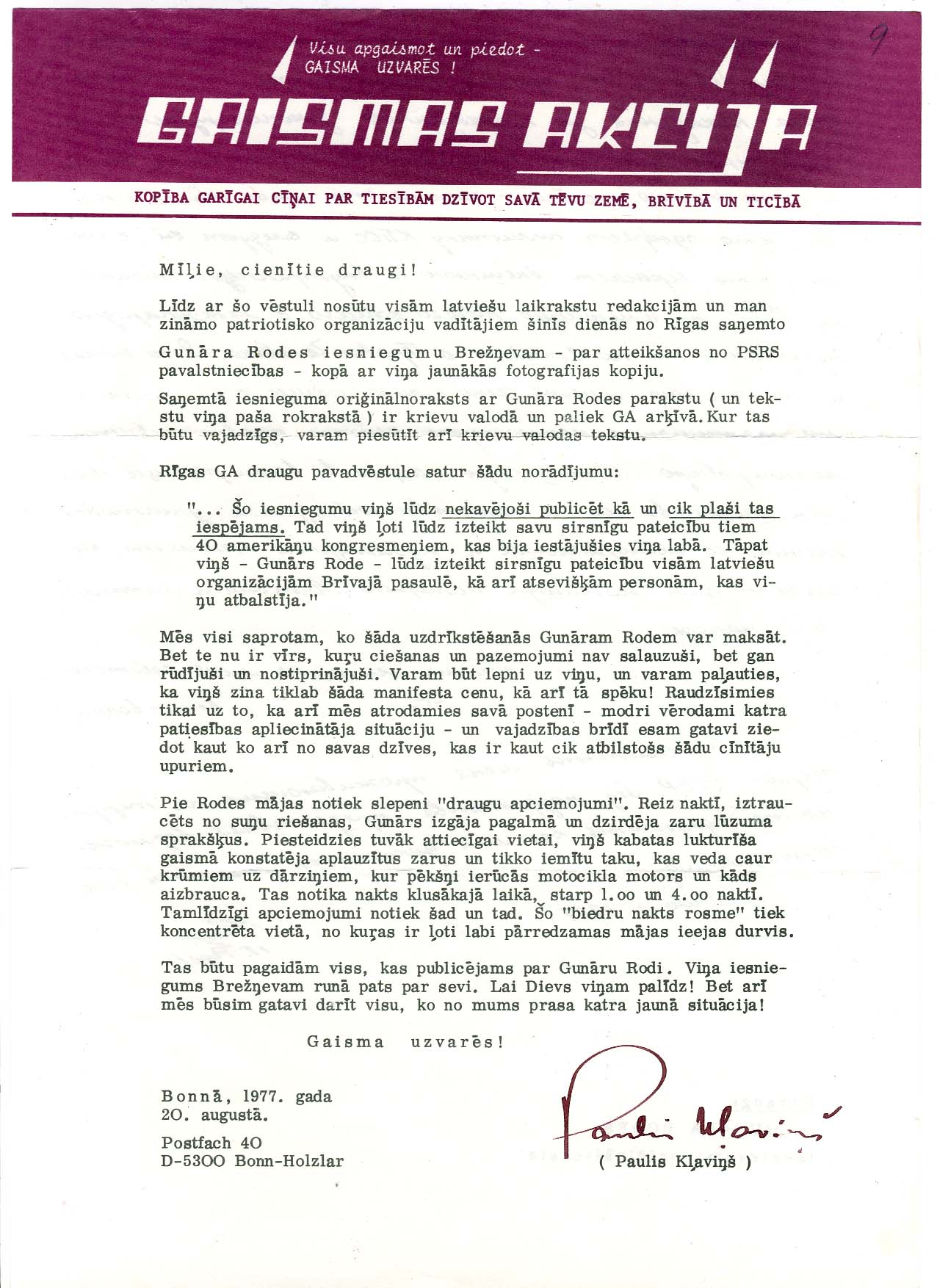 Dokumenti saņemti no Z. Zadvinska 1997. gadā.